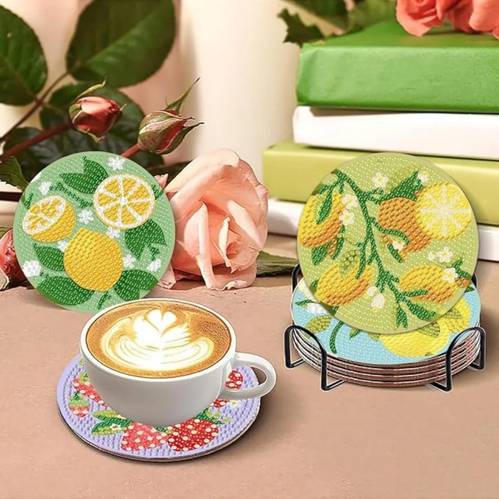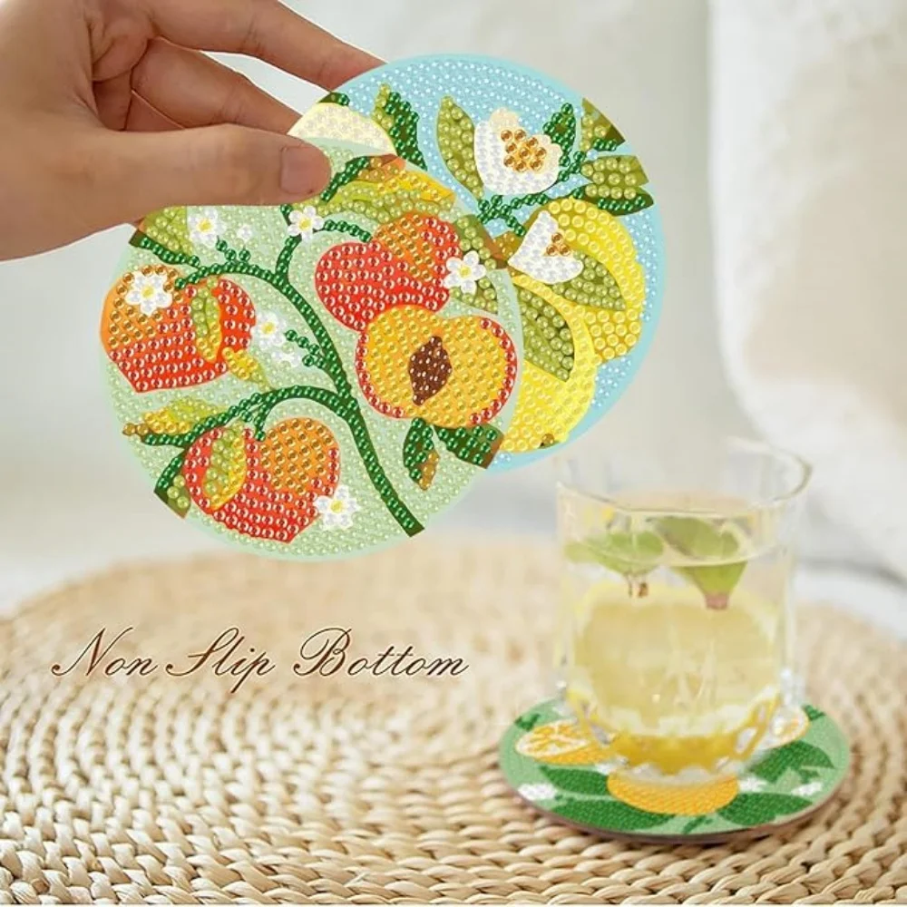 8 pieces of diamond art painting coasters with brackets, DIY fruit patterned diamond art coasters, suitable for both adults and