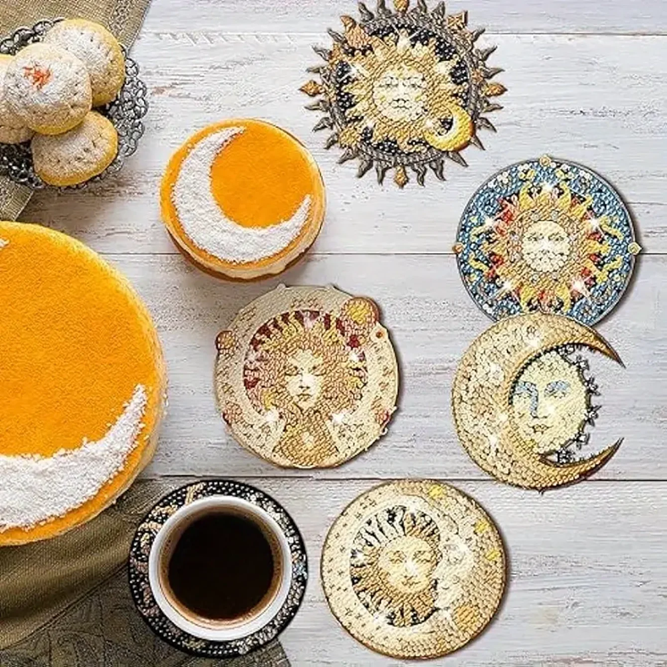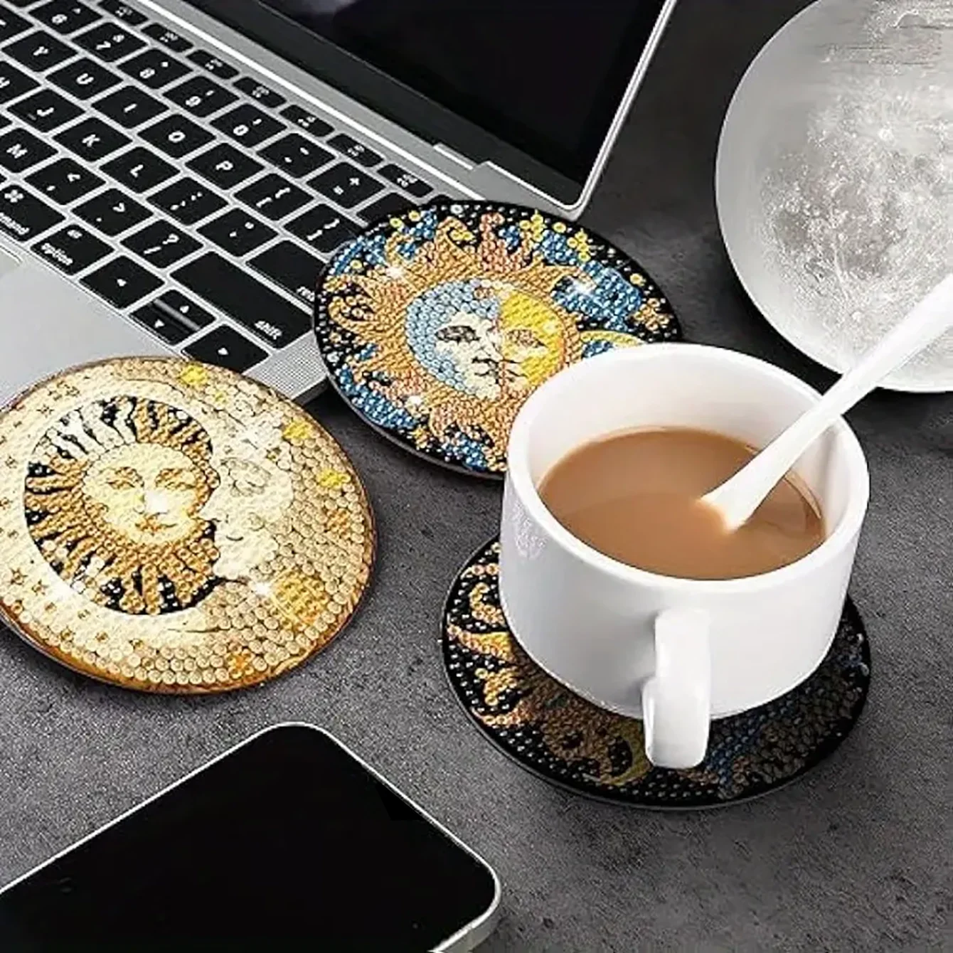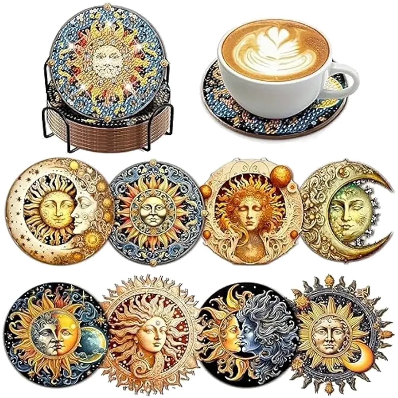 8 pieces/set Sun God pattern diamond painted coaster set with holder DIY coaster beginner coaster, craft supplies gift
